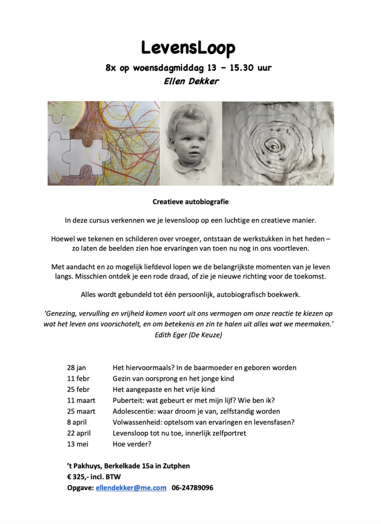 28 jan – 13 mei 2026: Levensloop, creatieve autobiografie 8x om de week