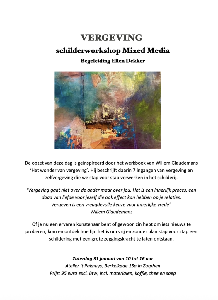 zaterdag 31 januari: schildersworkshop mixed media – Vergeving